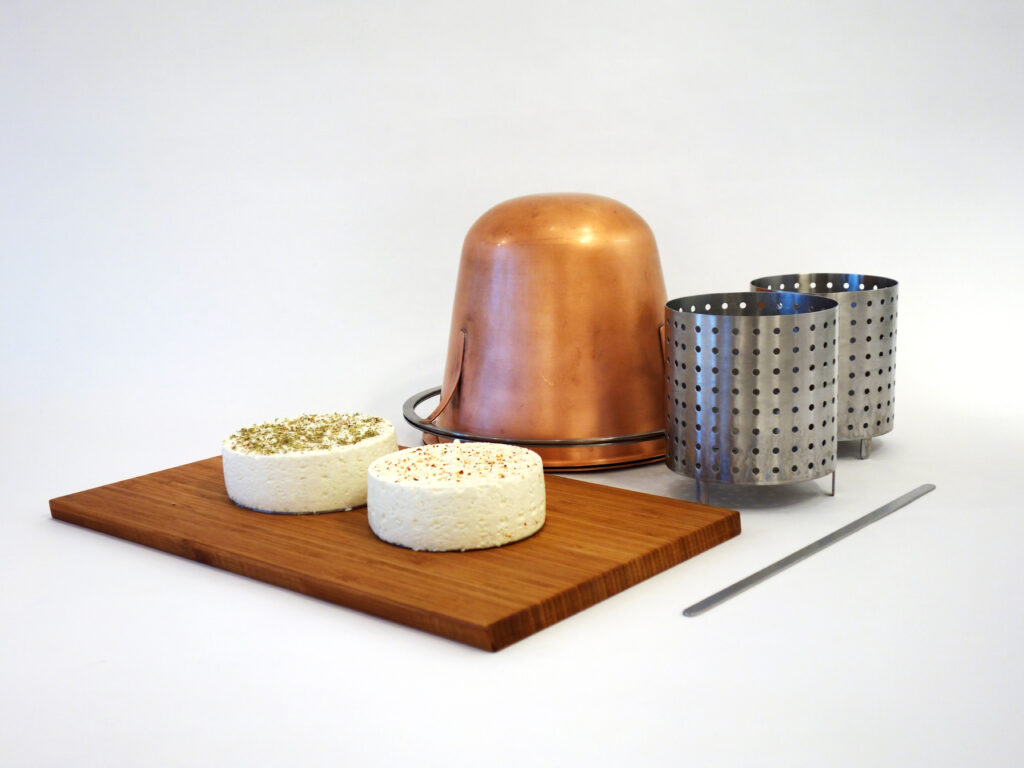 Die Hauskäserei, ein Set von Käserwerkzeugen, greift altes Wissen über die traditionelle Käseherstellung auf und übersetzt dieses in eine neue Zeit, in der das Selbermachen und ein bewusster Umgang mit Lebensmitteln wichtiger werden. Bestehend aus Kessel, Deckel, Förmchen und Bruchmesser ermöglicht die Hauskäserei, hochwertigen Käse selbst herzustellen.